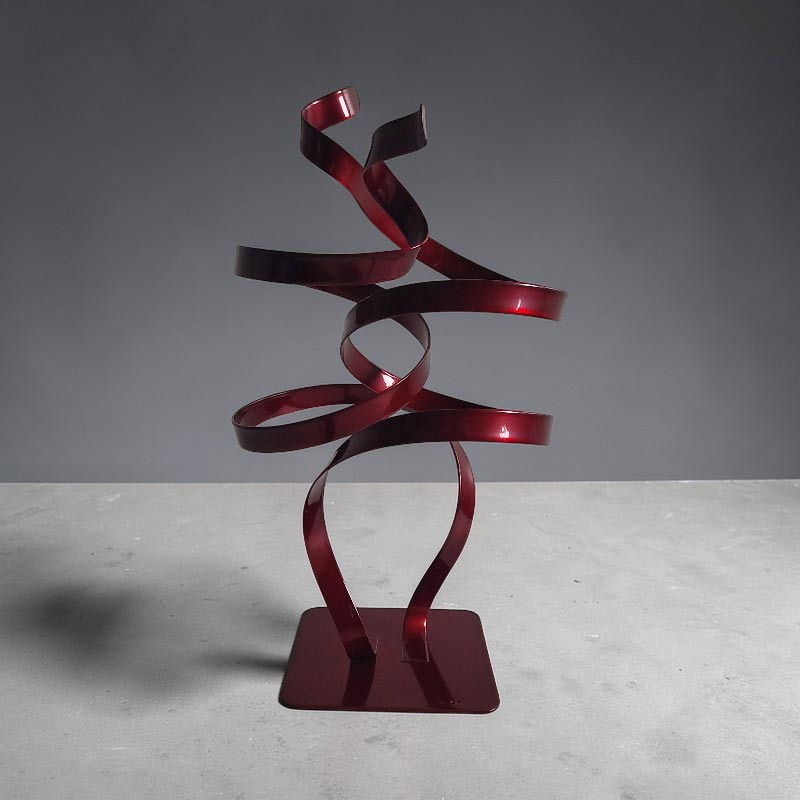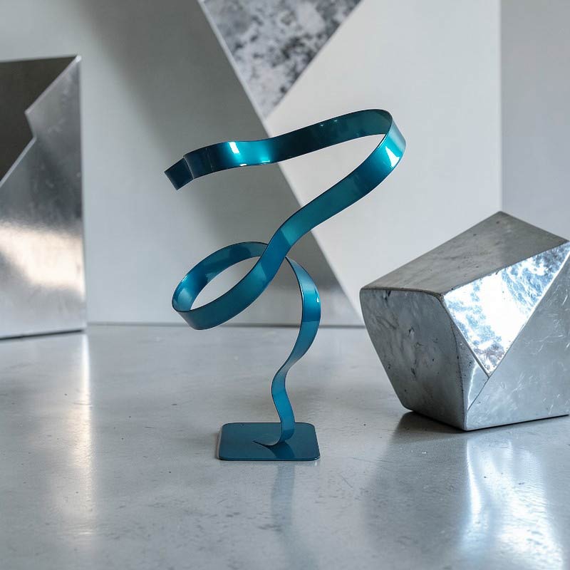 À partir d’une plaque de métal, je créé et façonne et peint chaque sculpture à la main dans mon atelier.
