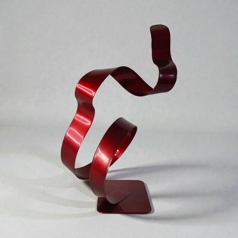 Cette sculpture en métal abstraite rouge est entièrement réalisée à la main dans mon atelier à partir d’une plaque d’acier découpée, travaillée et mise en forme.
