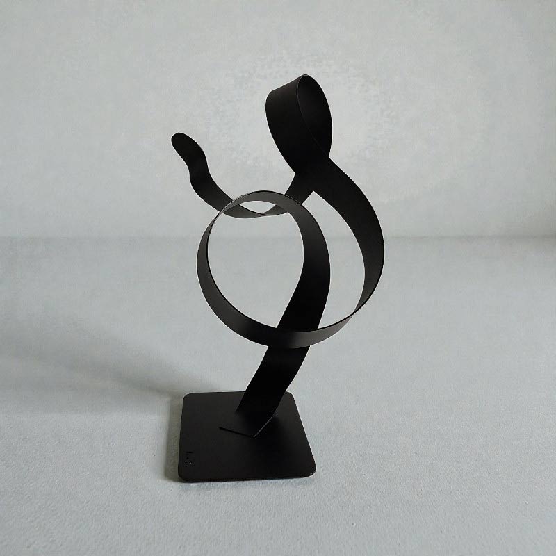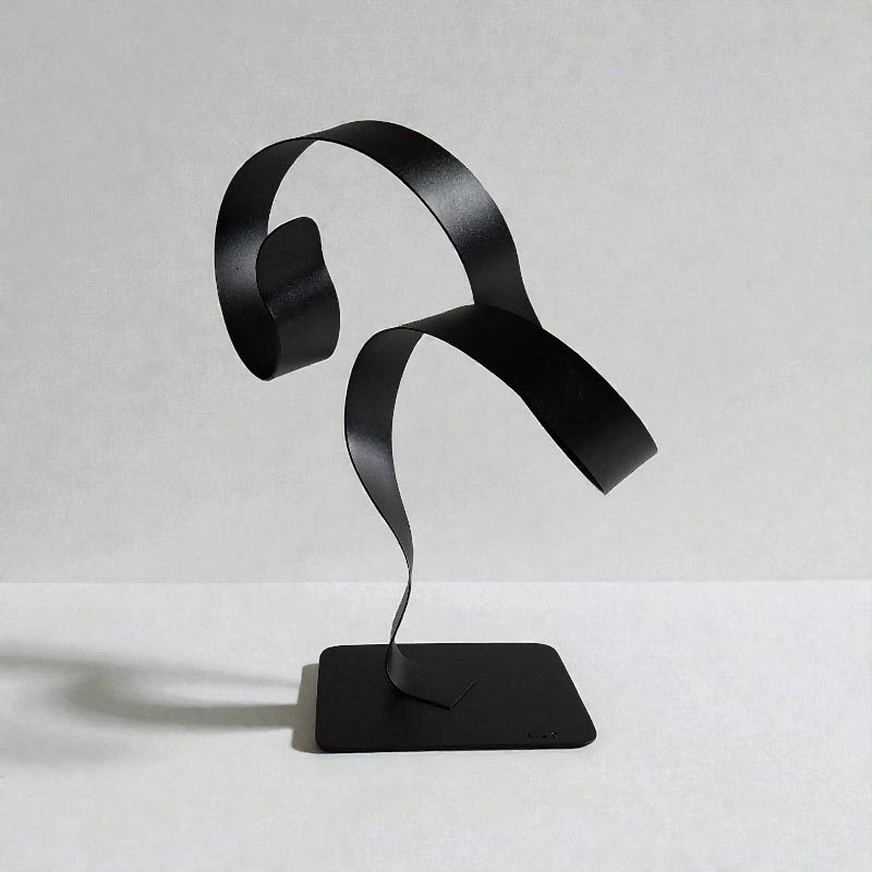Sculpture ruban métal abstraite noir pailleté, façonnée à la main. Un ruban torsadé élégant qui apporte mouvement et modernité à votre intérieur.